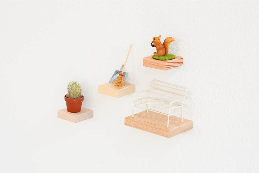 "Mori no Kotana" can be easily attached to the wall of your home like a thumbtack, creating a small display space.