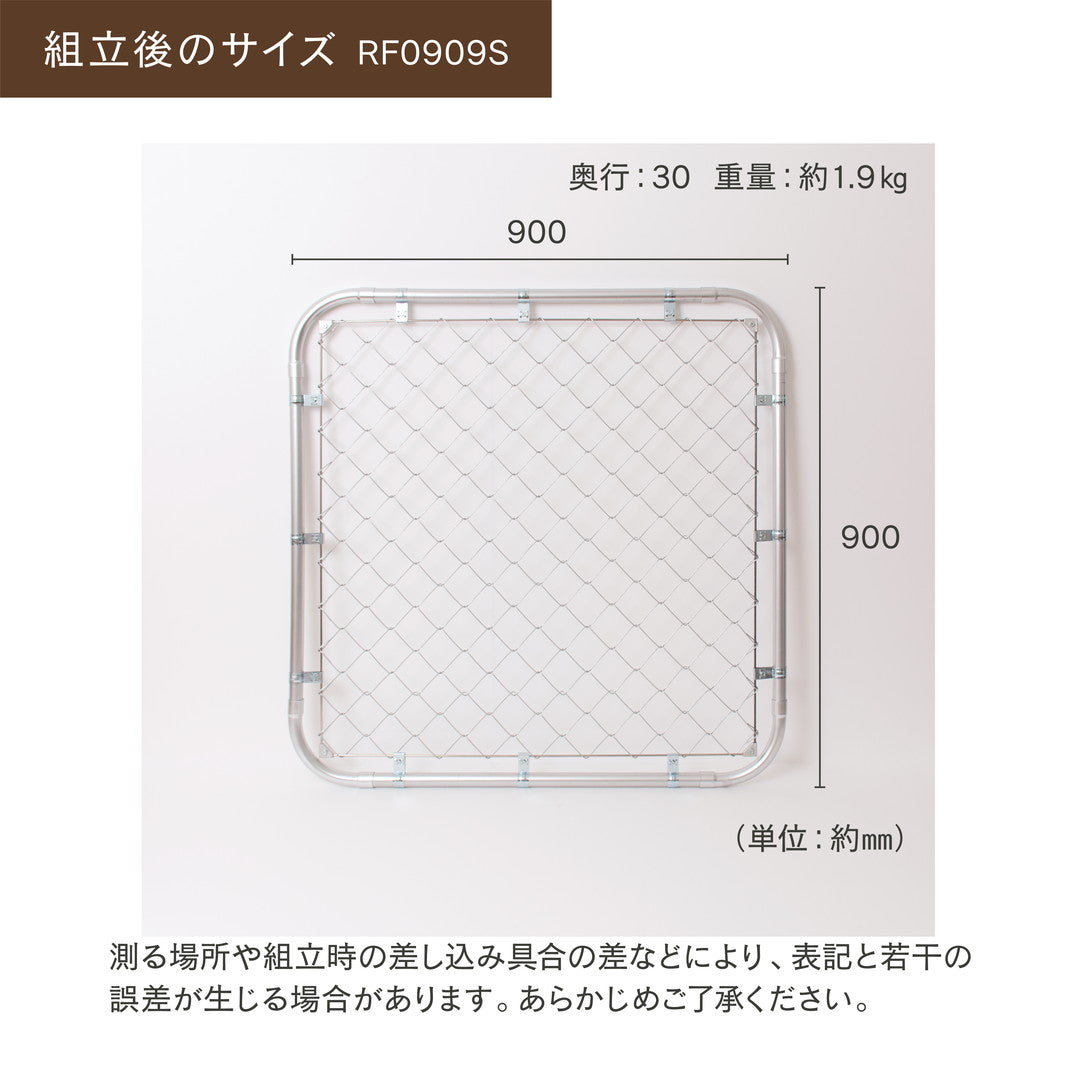 900×900mmサイズで約2kg! 既製品のアメリカンフェンスと比べて軽い仕様になっています。
