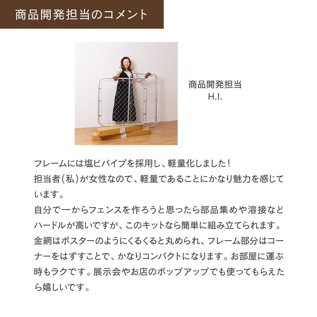 お部屋やお店をアメリカンにしたい方、ガレージや趣味の部屋をこだわりの空間にしたい方、フェンスを置きたくても重さや持ち運びの大変さなどのハードルが高くて諦めていた方のために開発した、「軽量」「組立・解体ができる」「持ち運びしやすい」フェンスです!