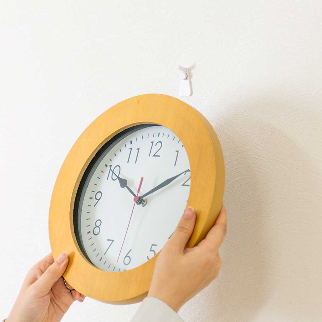 壁掛け時計をしっかり取り付け。
